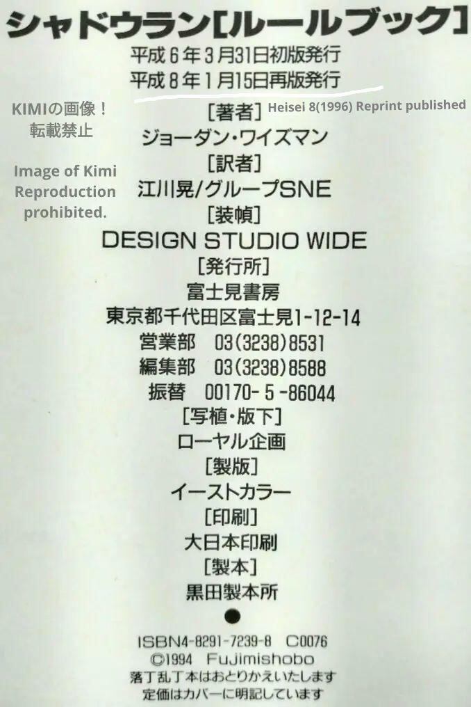 Shadowrun Rulebook Volume 1996 Reprint Edition Jordan Weisman (Author), Akira Egawa (Translator), Group SNE (Translator)