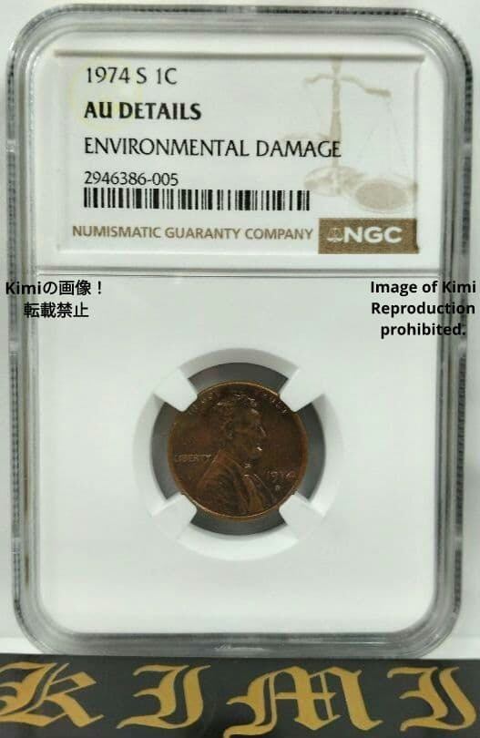 1 セント リンカーン 1974 S NGC AU DETAILS Memorial Cent ENVIRONMENTAL DAMAGE Bronze ブロンズ 1 Cent Lincoln 1974 S NGC AU DETAILS Memorial Cent ENVIRONMENTAL DAMAGE Bronze