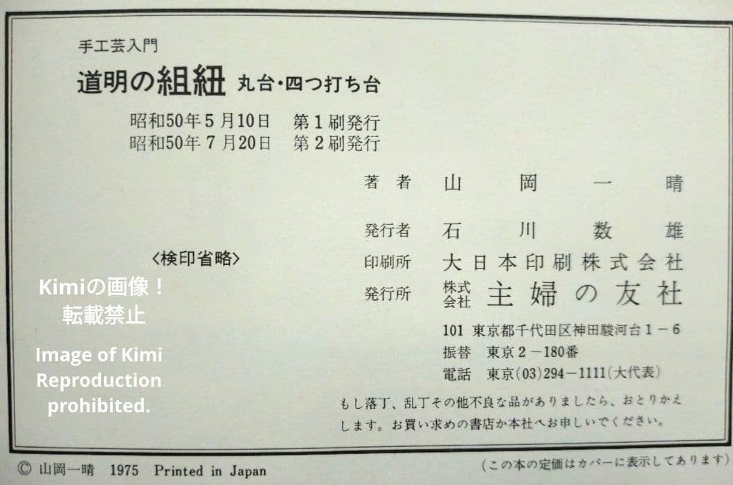 手工芸入門 道明の組紐 丸台・四つ打ち台 本 1975 山岡一晴 やまおか いっせい 第2刷